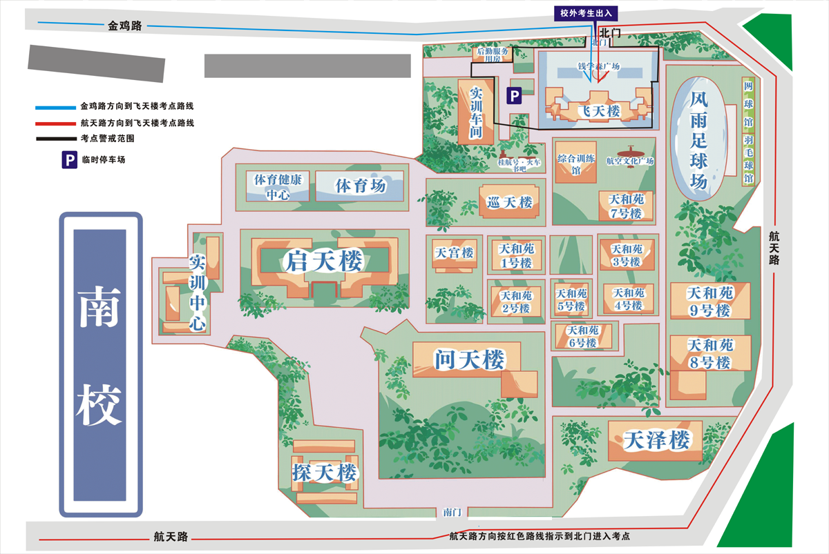 2.本次考试考场安排在我校南校区的飞天楼,所有考生需从南校区北门(金鸡路)进入。